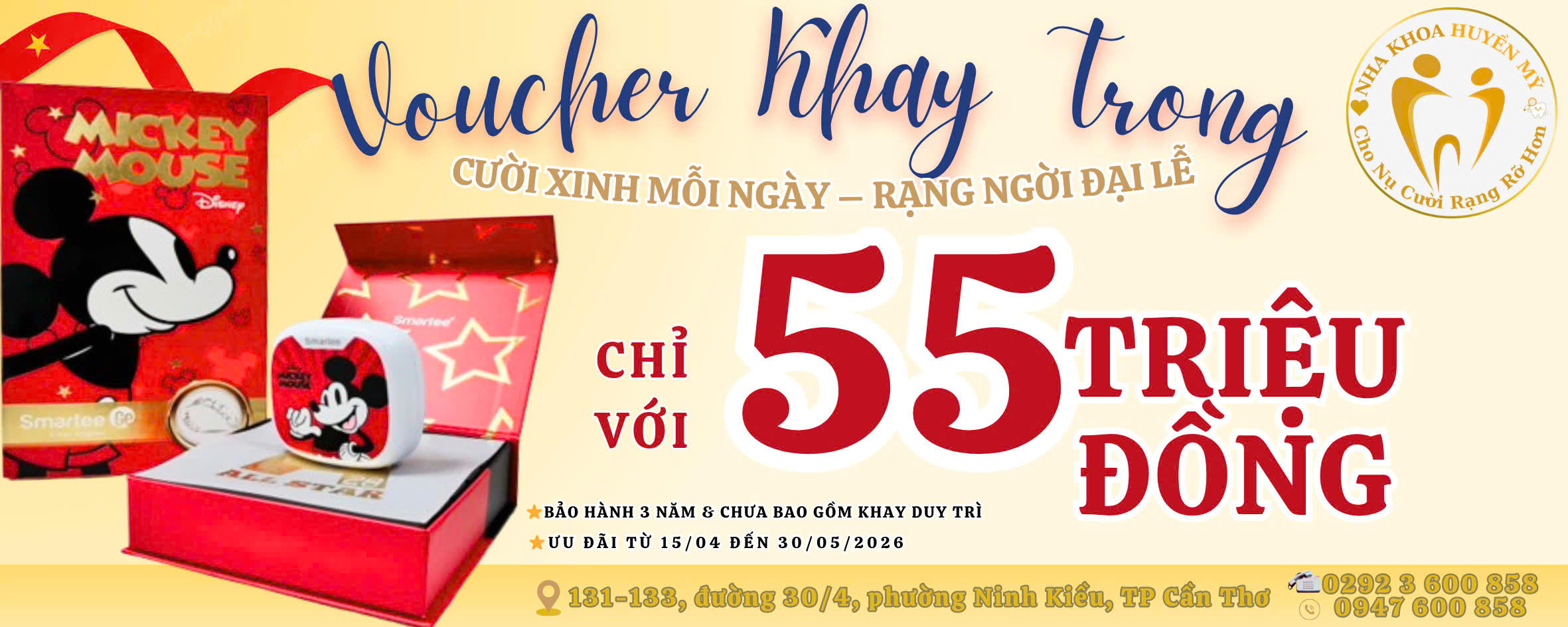 Nhân dịp lễ 30/4 & 1/5 và bước vào mùa hè sôi động, Nha Khoa Huyền Mỹ mang đến chương trình ưu đãi đặc biệt dành cho khách hàng mong muốn cải thiện nụ cười một cách thẩm mỹ – hiện đại – tiện lợi.